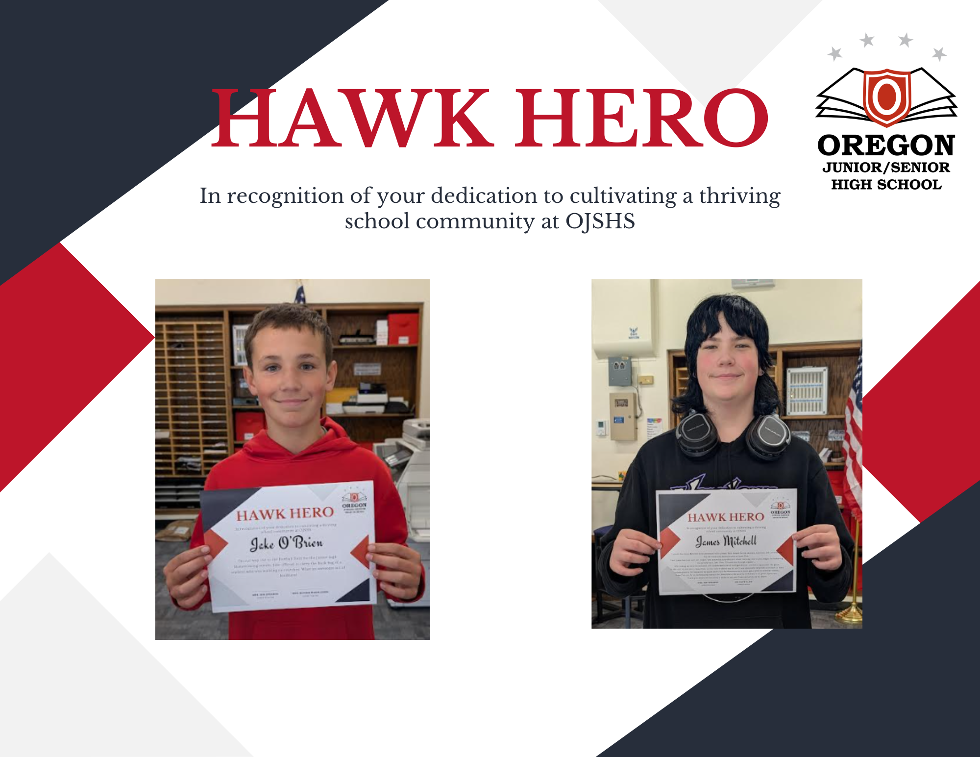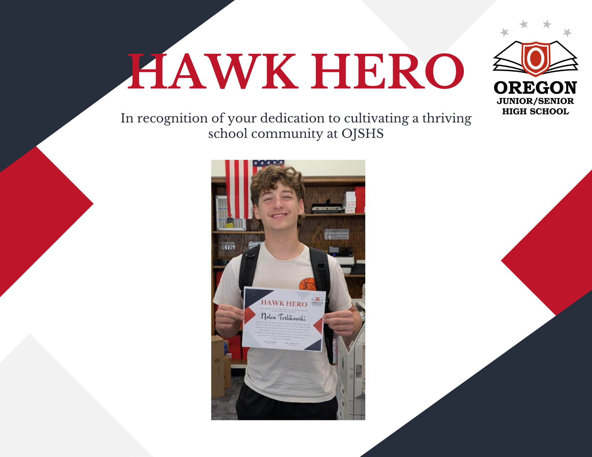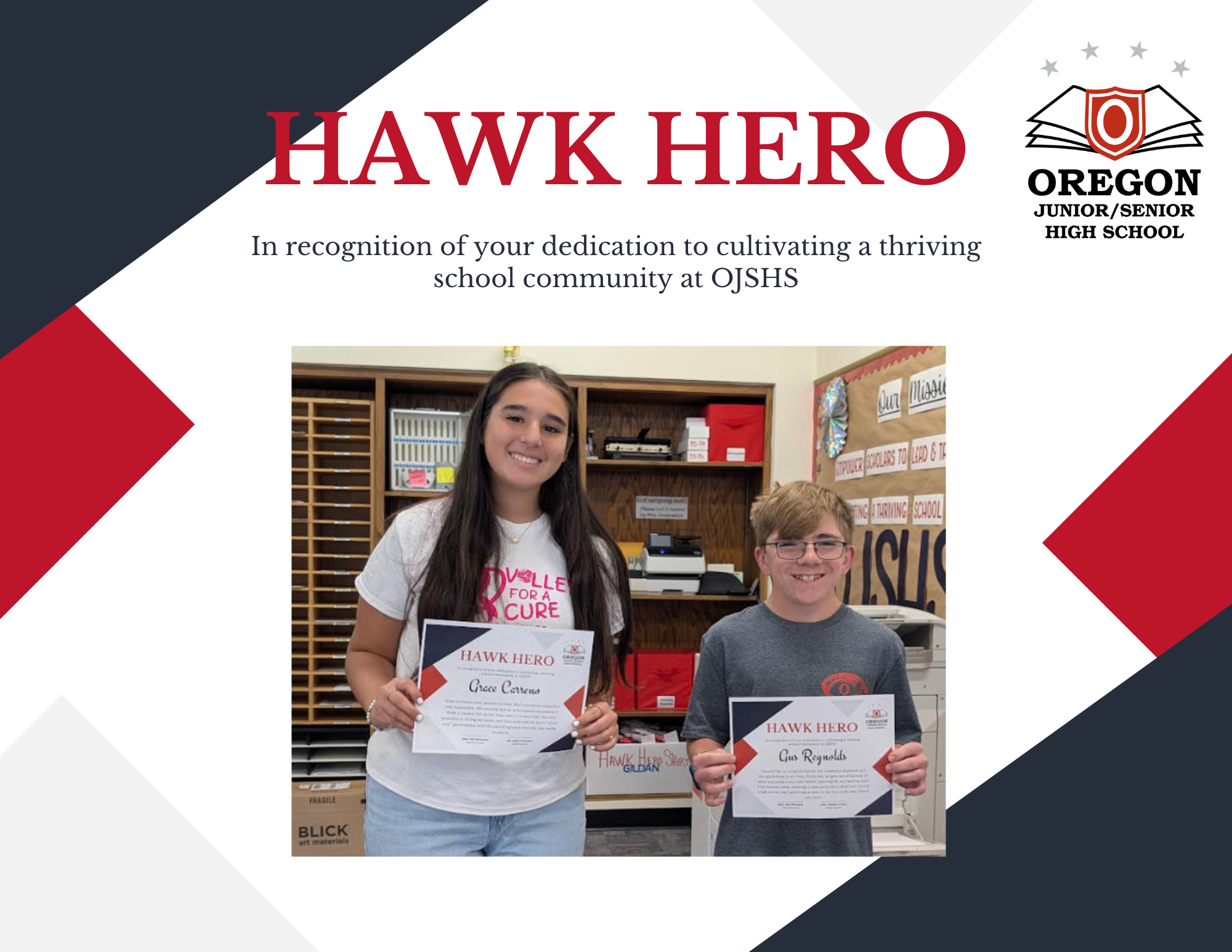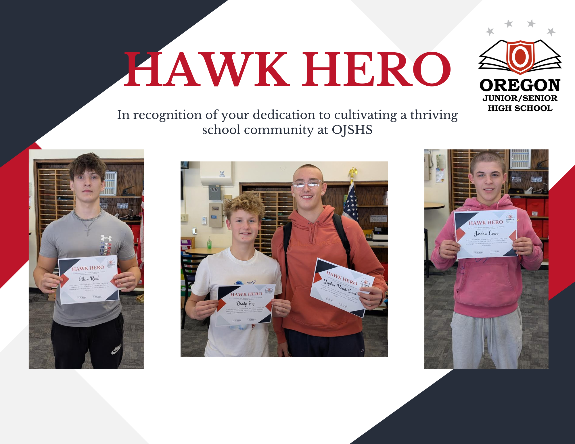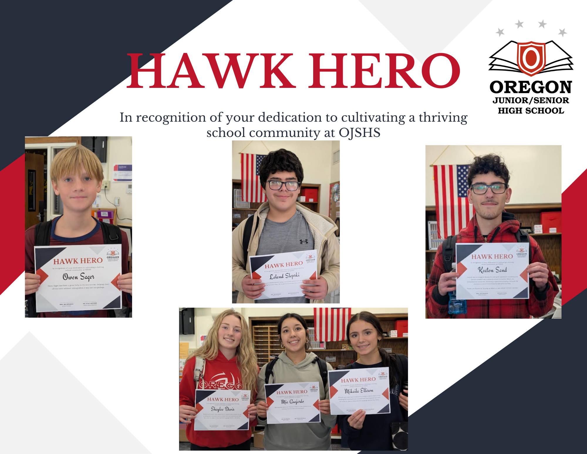 OJSHS continues to celebrate our Hawk Heroes! What is a Hawk Hero? A Hawk Hero is someone who is empowered to lead and take pride in cultivating a thriving school community.
